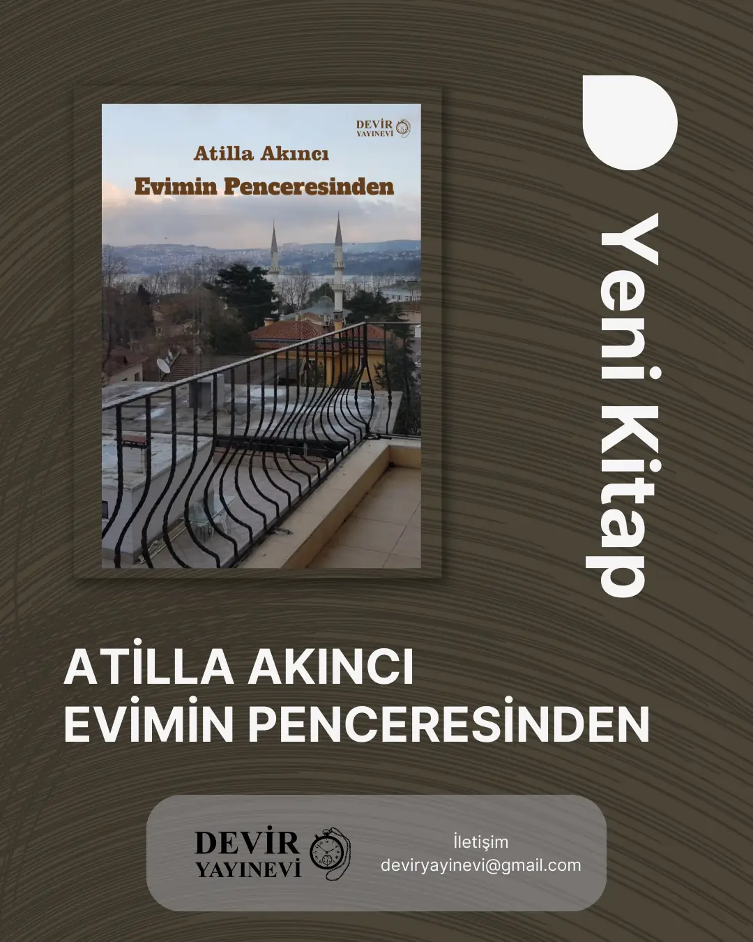Devir Yayınevi olarak yeni bir şiir yolculuğunun kapılarını aralamaktan mutluluk duyuyoruz. Atilla Akıncı’nın kaleminden çıkan Evimin Penceresinden, okuru içtenlikli bir pencerenin ardına davet ediyor.